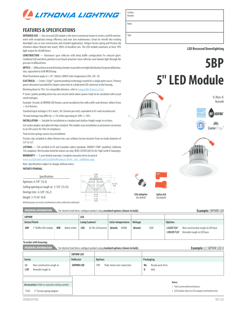 Catalog Number Notes FEATURES & SPECIFICATIONS INTENDED USE Our recessed LED module is the most economical means to create a well lit environment with exceptional energy efficiency and near zero maintenance.