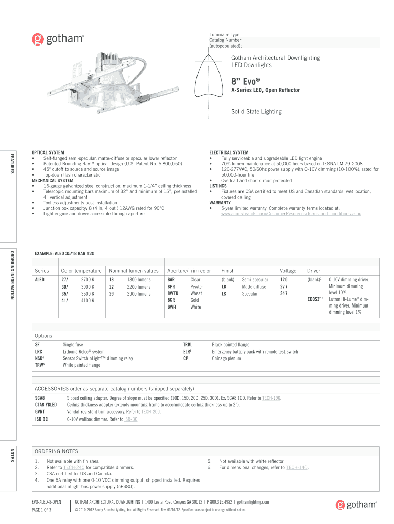 Luminaire Type: Catalog Number (autopopulated): Gotham Architectural Down lighting LED Down lights 8 Eve A-Series LED, Open Reflector Solid-State Lighting FEATURES OPTICAL SYSTEM Self-managed semi-specular,