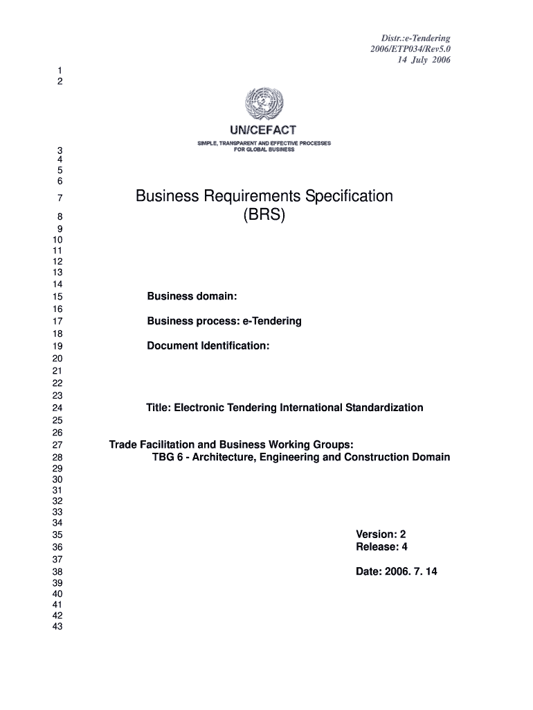 Dist.:tendering 2006×ETP034×Rev5.0 14 July 2006 1 2 3 4 5 6 7 8 9 10 11 12 13 14 15 16 17 18 19 20 21 22 23 24 25 26 27 28 29 30 31 32 33 34 35 36 37 38 39 40 41 42 43 Business Requirements Specification