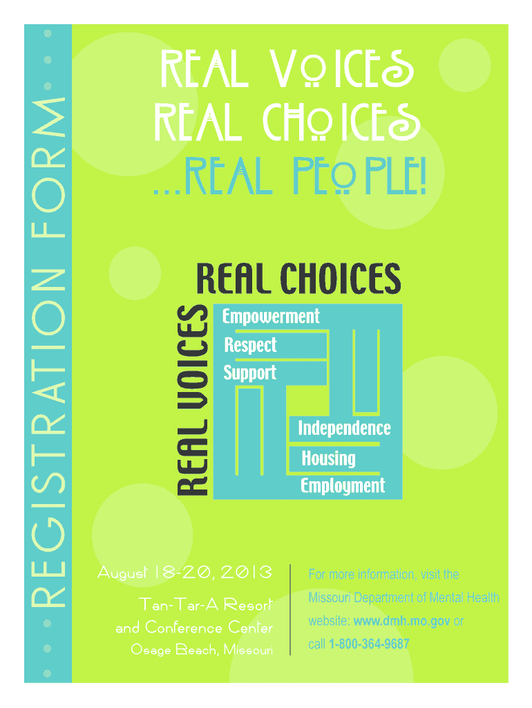 Real Voices Real Choices. . Real People! August 1820, 2013 Tantra Resort and Conference Center Osage Beach, Missouri For more information, visit the Missouri Department of Mental Health website: www.dmh.mo.gov