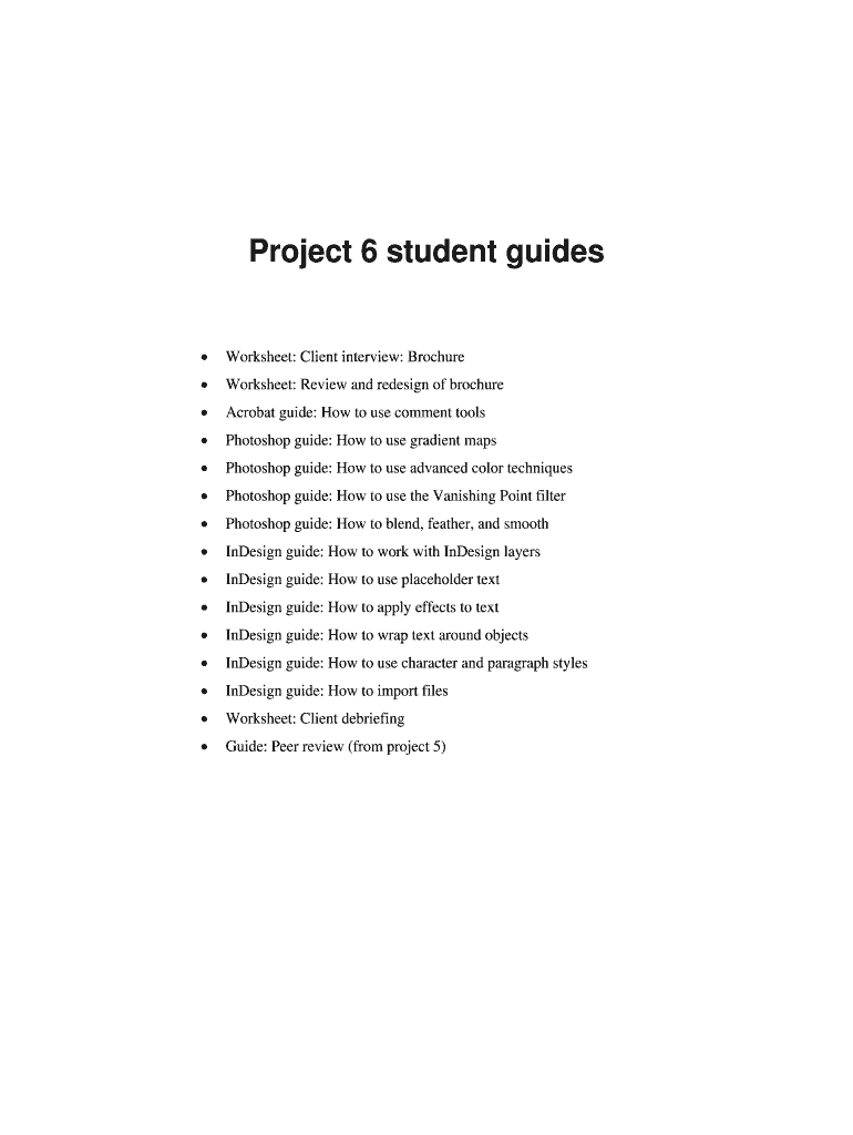 Get the free Project 6 student guides Worksheet: Client interview: Brochure Worksheet: Review and...
