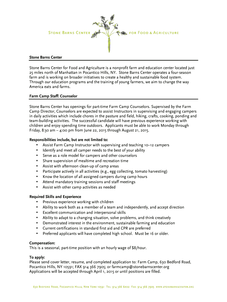 Start by researching the Stone Barns Center and learning about their mission and programs.