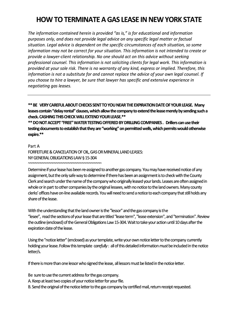 HOW TO TERMINATE A GAS LEASE IN NEW YORK STATE