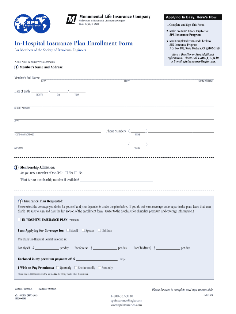 The In-Hospital Insurance Plan Enrollment Form is a crucial document for members of the Society of Petroleum Engineers (SPE). It serves as a gateway for obtaining hospital indemnity insurance coverage, which is vital for ensuring financial protection during hospital stays.