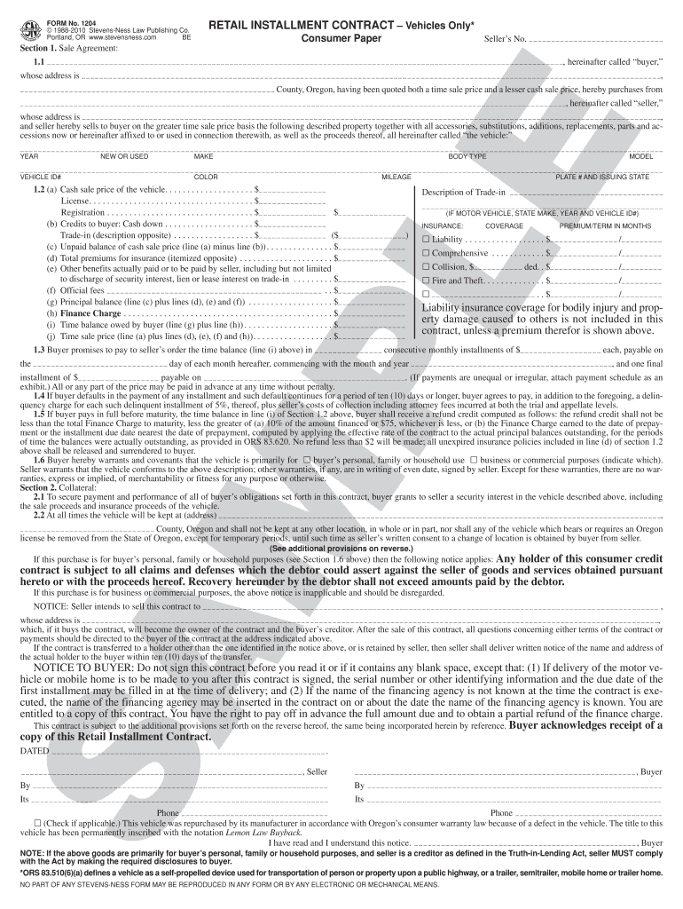 How to fill out the retail installment contract for