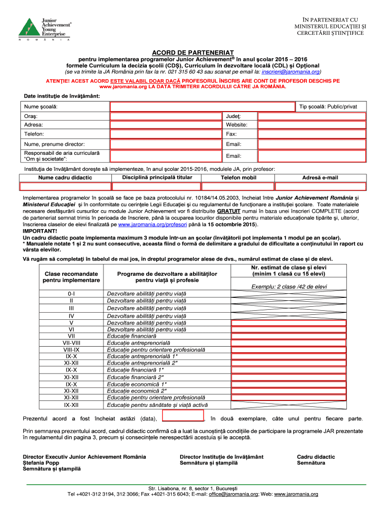 N PARTNERING CU MINISTER UL EDUCATED I CERCETRII TIINIFICE DE PARTNERING entry implement area programmer Junior Achievement n annul color 2015 2016 former Curriculum la Cecilia Colin (CD×, Curriculum