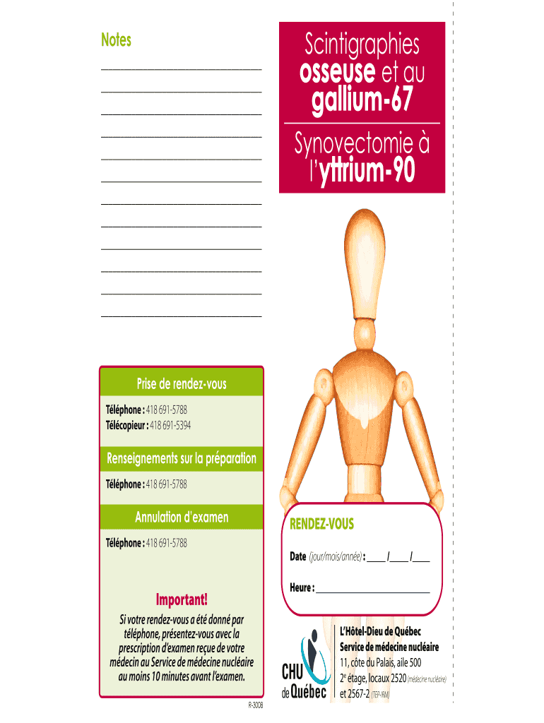 Notes Scintigraphies masseuse et AU gallium67 Synovectomie lyttrium90 Price DE rendezvous Tl phone : 418 6915788 Copiers : 418 6915394 Restatements SUR la preparation Tl phone : 418 6915788 Annulation