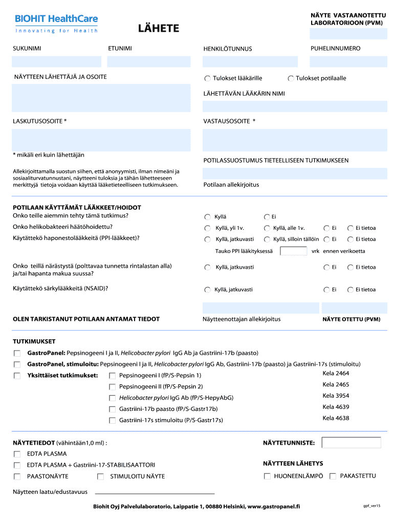 The person or entity sending the sample is required to fill out nytteen lhettj ja osoite.