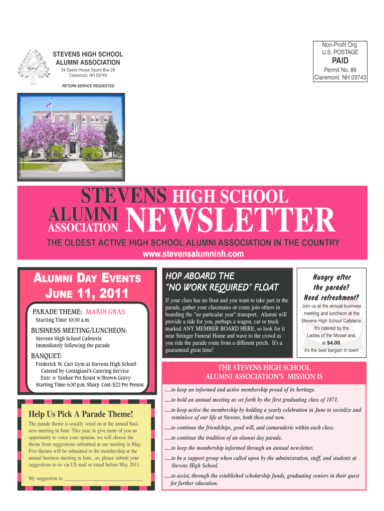 Get the free Non-Profit Org STEVENS HIGH SCHOOL ALUMNI ASSOCIATION PAID