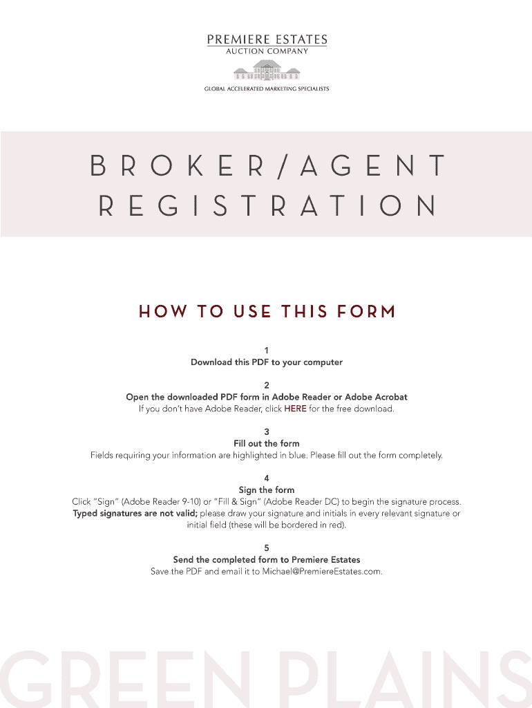 Get the free BROKERAGENT REGISTRATION - Premiere Estates Auction Company