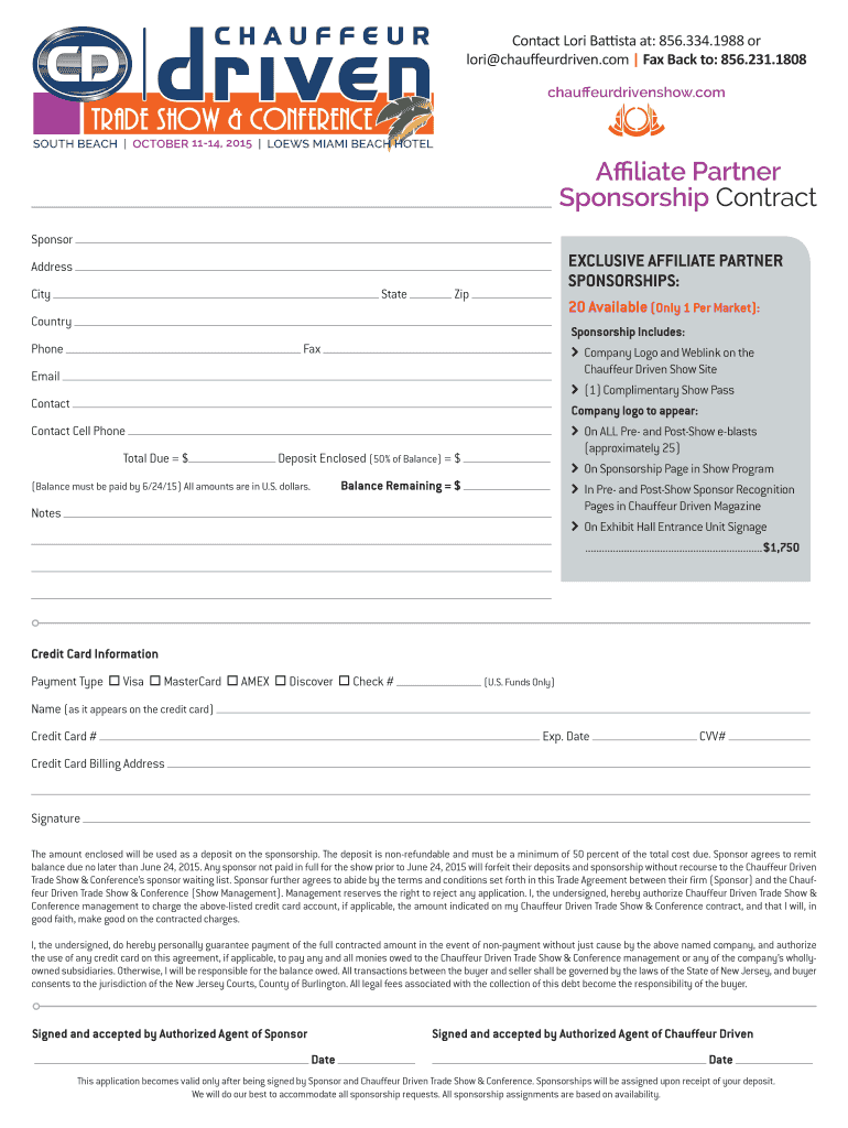 Get the free Affiliate Partner Sponsorship Contract - Chauffeur Driven Show