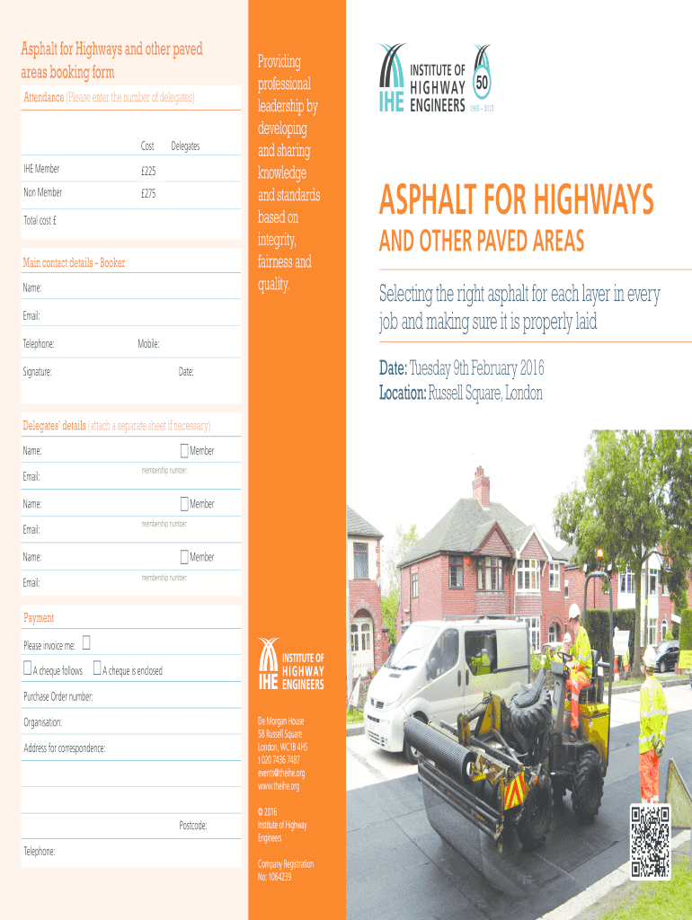 Asphalt for Highways and other paved areas booking form Attendance (Please enter the number of delegates) Cost THE Member 225 Non Member Delegates 275 Total cost Main contact details Booker Name: