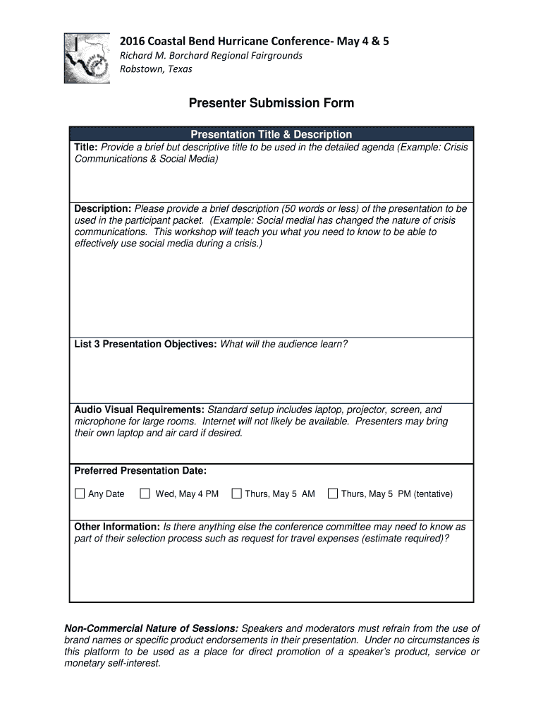 May 4 & 5 Richard M. Orchard Regional Fairgrounds Robs town, Texas Coastal Bend Hurricane Conference www.CoastalBendCAN.org The Coastal Bend Emergency Management Association (CB EMA) is now accepting