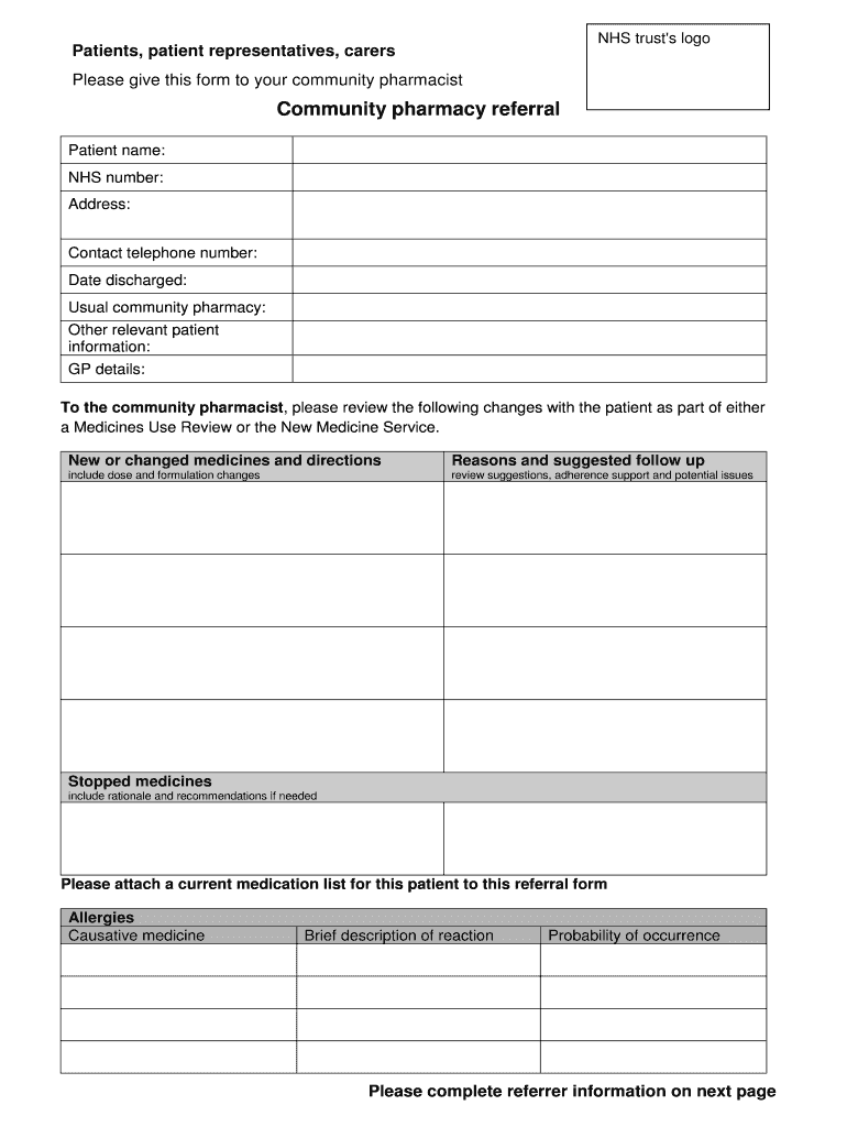 How to fill out nhs community pharmacy referral