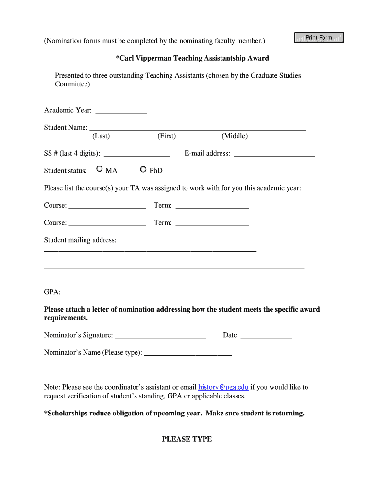 Get the free Nomination forms must be completed by the nominating - history uga