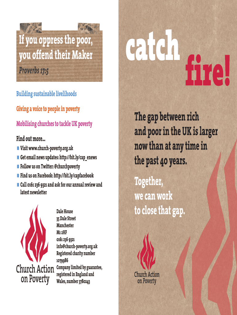 If you oppress the poor, you offend their Maker Proverbs 17:5 catch Building sustainable livelihoods Giving a voice to people in poverty Mobilizing churches to tackle UK poverty Find out more... Visit