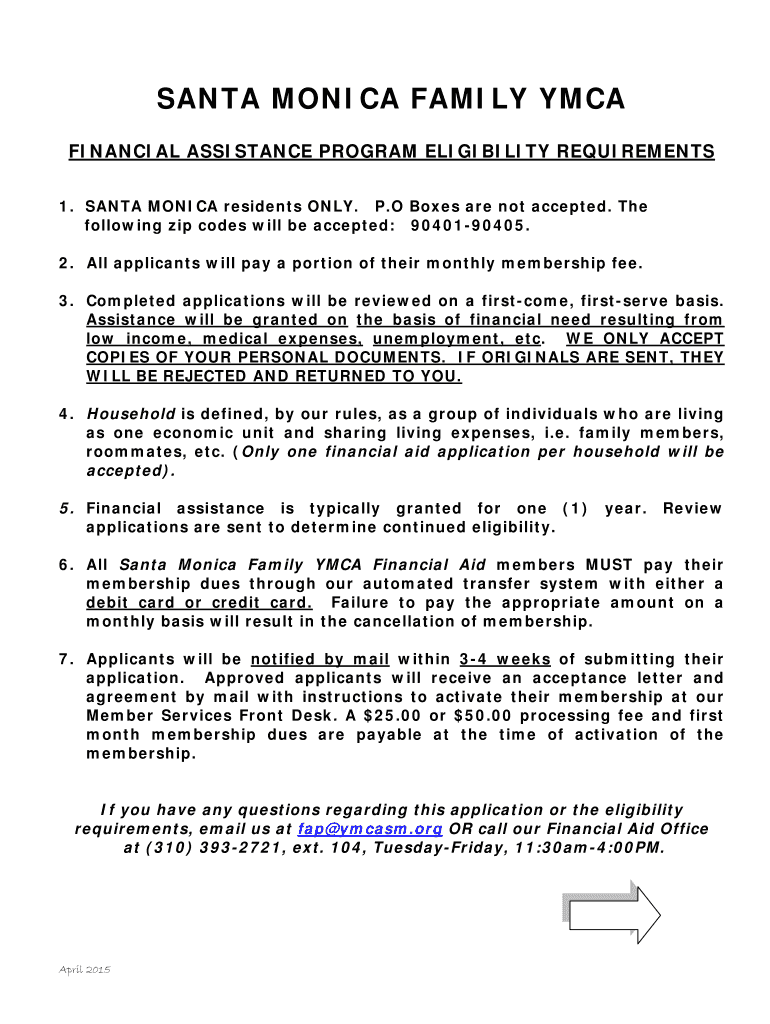 Get the free FINANCIAL ASSISTANCE PROGRAM ELIGIBILITY REQUIREMENTS - ymcasm