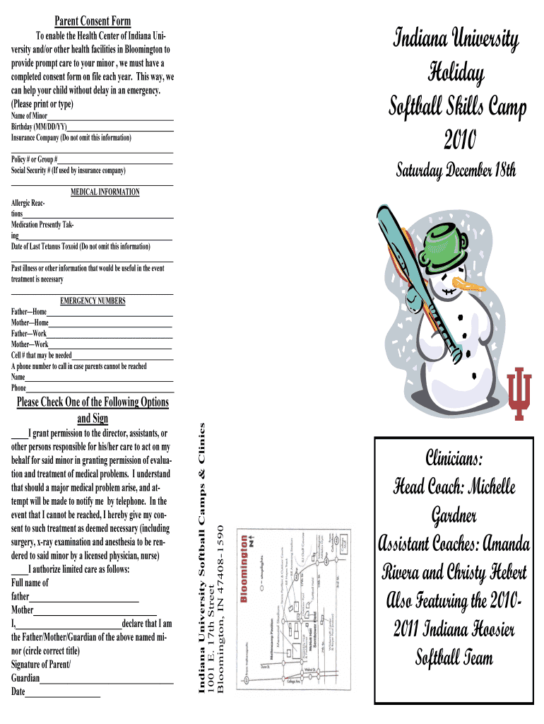 Parent Consent Form Indiana University Holiday Softball Skills Camp 2010 To enable the Health Center of Indiana University and×or other health facilities in Bloomington to provide prompt care to