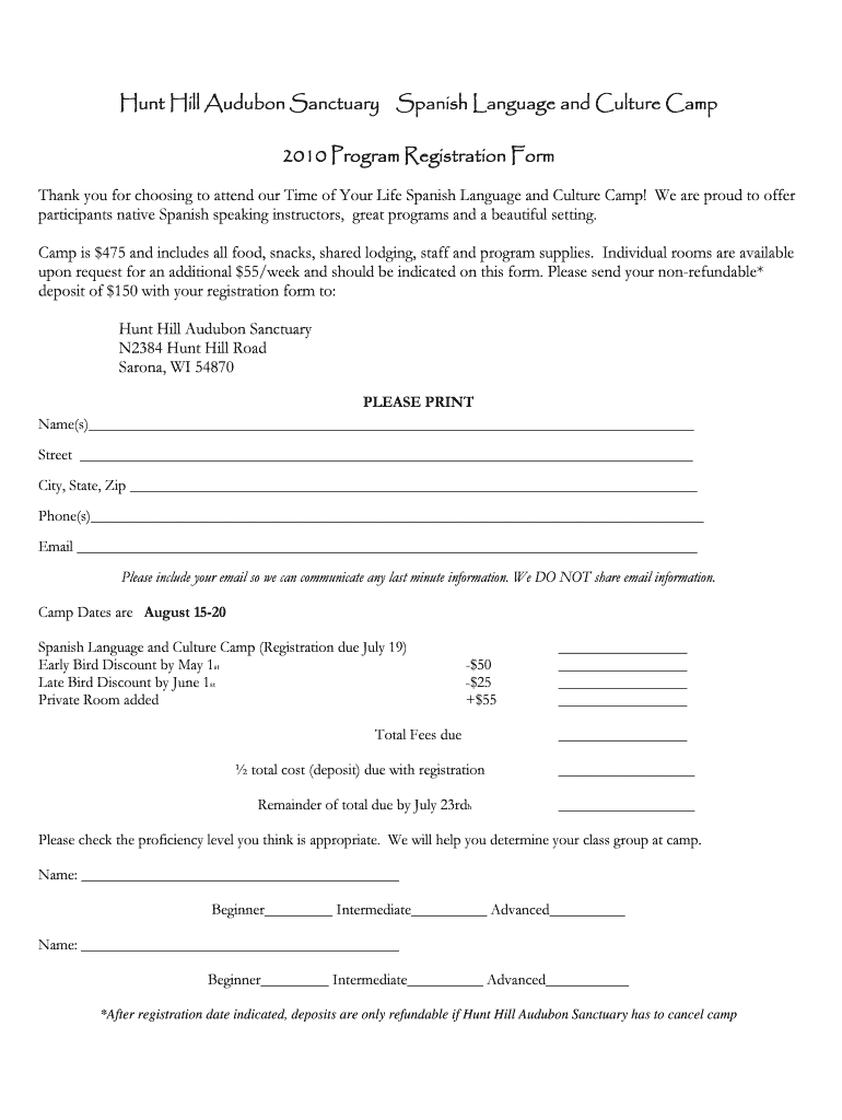 Get the free 2010 Spanish Registration Packetdoc - hunthillorg