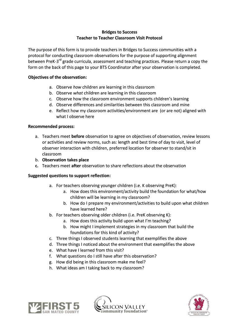 The purpose of this form is to provide teachers in Bridges to Success communities with a
