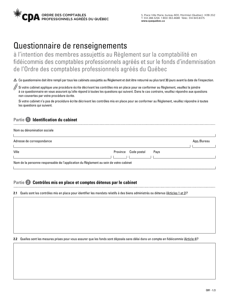 Obtenir le gratuit Questionnaire de renseignements lintention des membres assujettis au Rglement ...