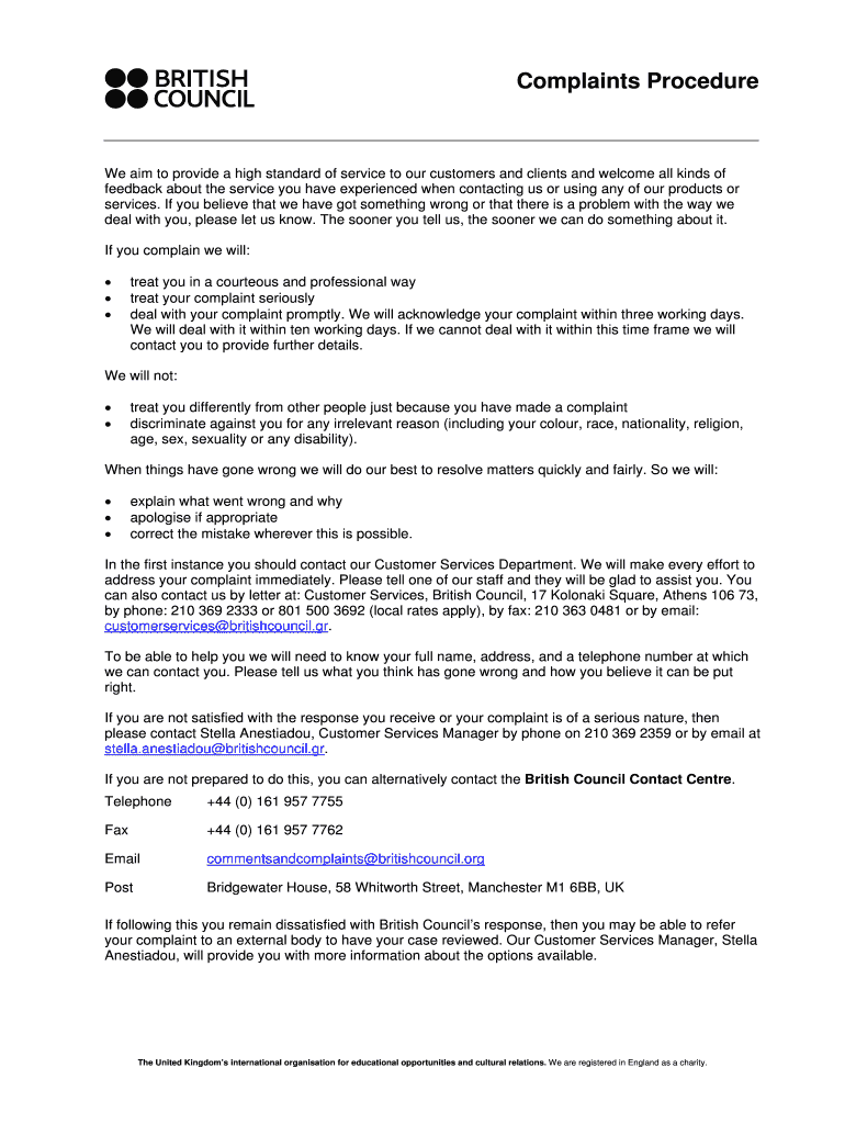Complaints Procedure aim to provide a high standard of service to our customers and clients and welcome all kinds of feedback about the service you have experienced when contacting us or using any