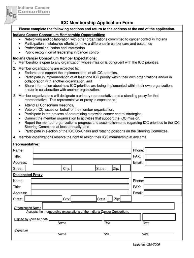 Get the free ICC Membership Application Form - indianacancerorg