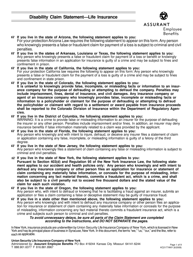 State-Specific Considerations for the Disability Claim Statement—Life Insurance