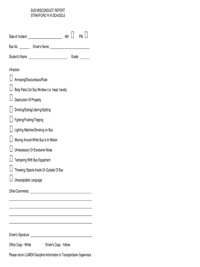 Get the free Bus Misconduct Reportdoc