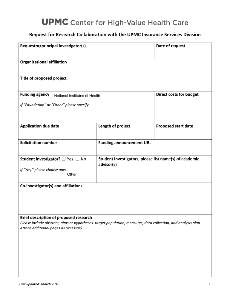 Get the free Request for Research Collaboration Form - UPMC Center for High ...