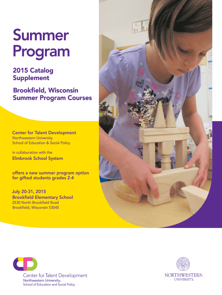 Summer Program 2015 Catalog Supplement Brookfield, Wisconsin Summer Program Courses Center for Talent Development Northwestern University School of Education & Social Policy in collaboration with