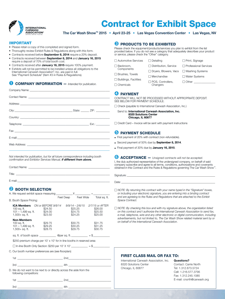Contract for Exhibit Space The Car Wash Show TM 2015 April 2325 Las Vegas Convention Center Las Vegas, NV IMPORTANT Please retain a copy of this completed and signed form. Thoroughly review Exhibit