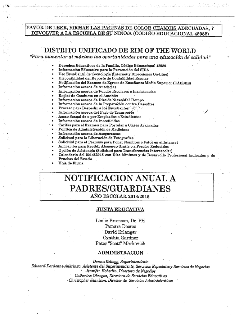 All parents/guardians are required to file notificacion anual a padresguardianes.