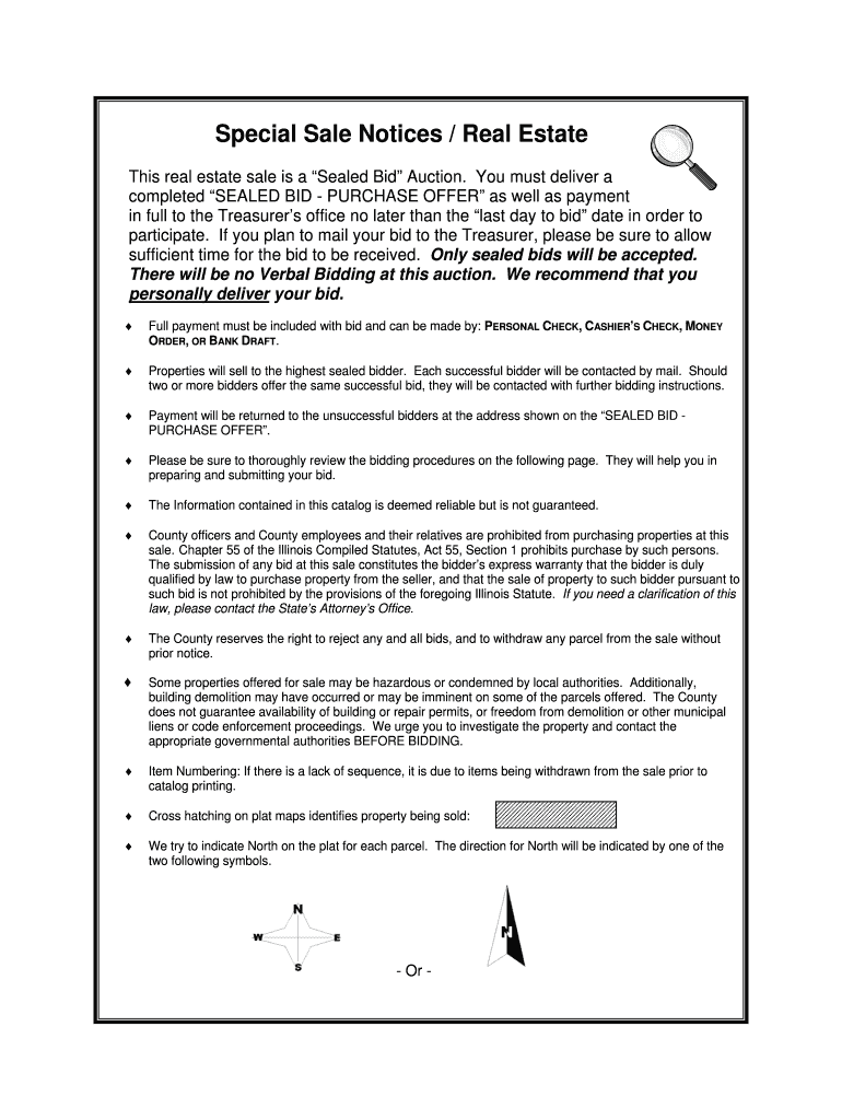 Special Sale Notices / Real Estate This real estate sale is a Sealed Bid Auction. You must deliver a completed SEALED BID PURCHASE OFFER as well as payment in full to the Treasurers office no later