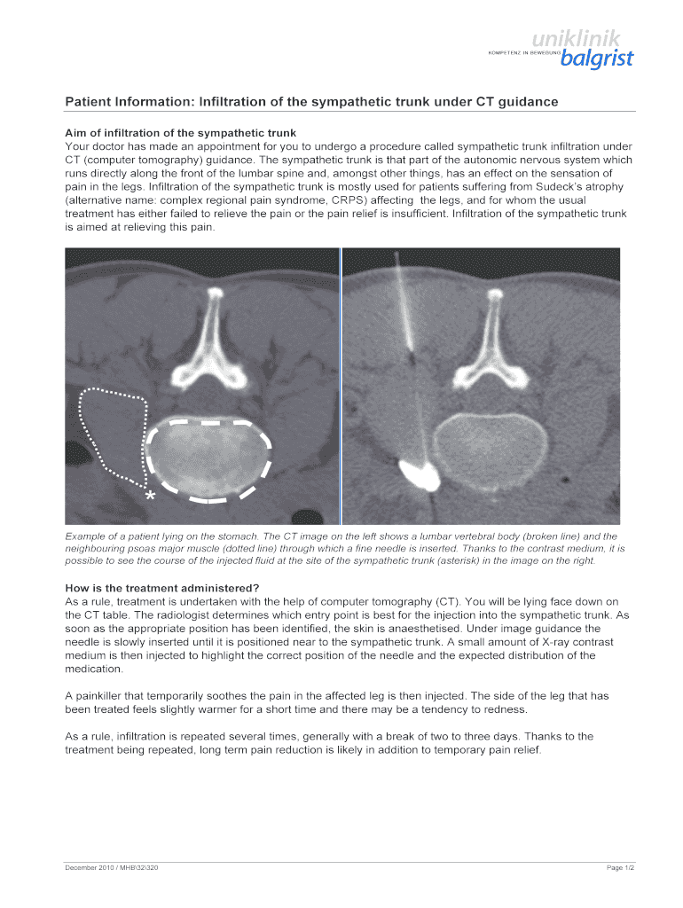 Get the free Patient Information Infiltration of the sympathetic trunk