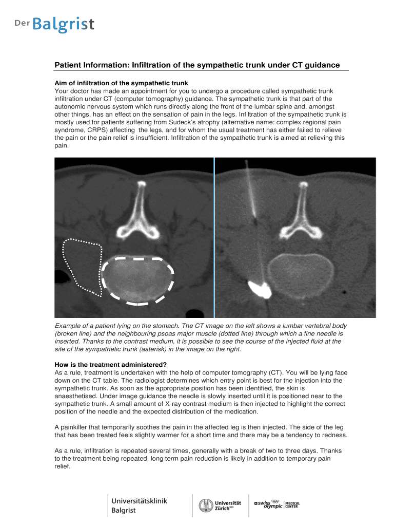 Get the free Patient Information Infiltration of the sympathetic trunk under CT guidance