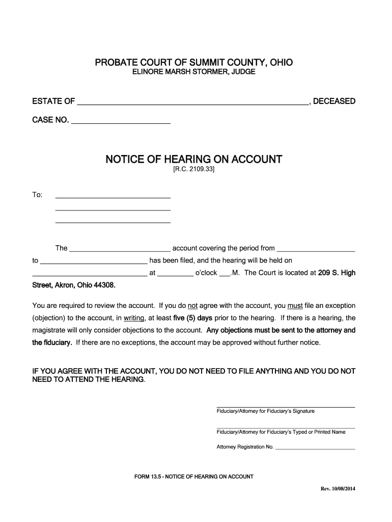 How to fill out NOTICE OF HEARING ON ACCOUNT?