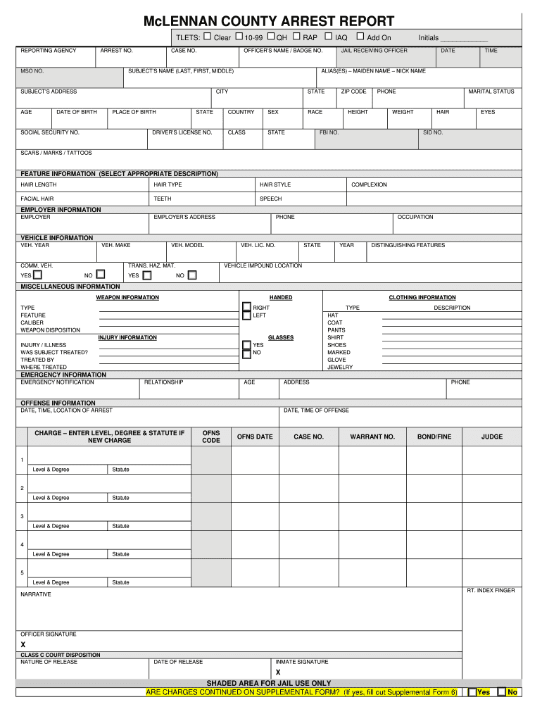 How to fill out McLENNAN COUNTY ARREST REPORT
