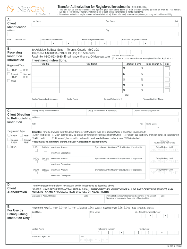 Get the free TFSA TFSA Transfer Authorization for Registered ... - NexGen Fin - secure nexgenfina...