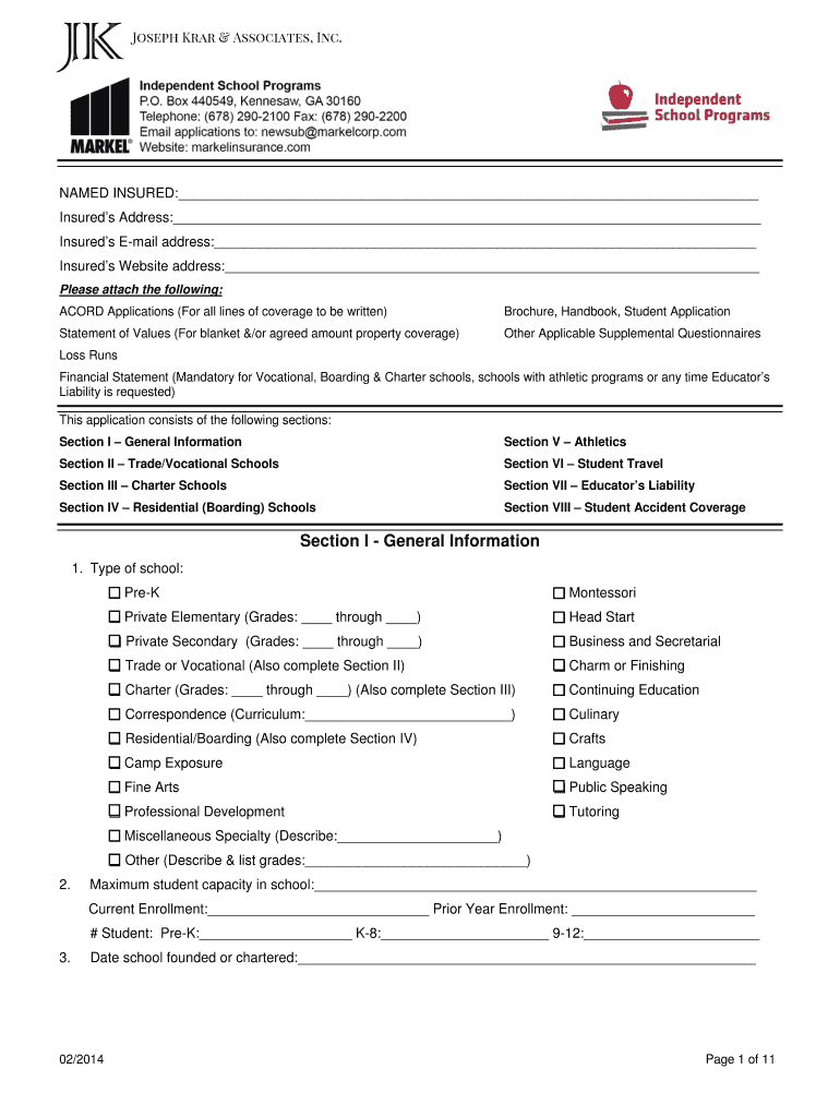 NAMED INSURED: Insureds Address: Insureds Email address: Insureds Website address: Please attach the following: Applications (For all lines of coverage to be written) Brochure, Handbook, Student Application