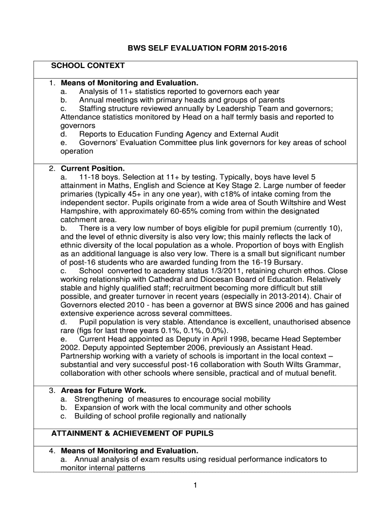 Get the free BWS SELF EVALUATION FORM 2015-2016 SCHOOL CONTEXT - bws-school org