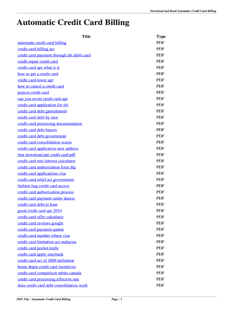 Individuals seeking convenience: Automatic credit card billing provides convenience as it eliminates the need to manually make payments each month. Once set up, payments are automatically deducted from your credit card, reducing the hassle of remembering due dates and logging into multiple accounts.