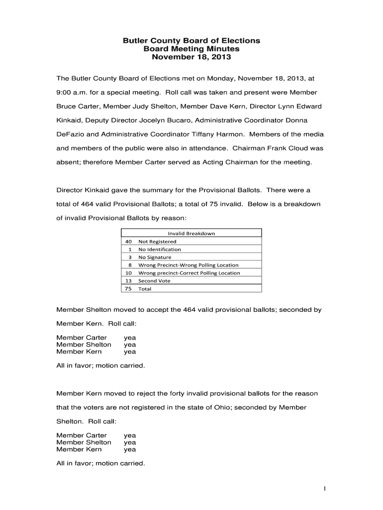 The Butler County Board of Elections met on Monday, November 18, 2013, at