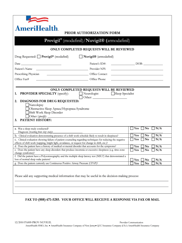 The Prior Authorization Form can be used by healthcare providers treating patients who require medication approval for Provigil or Nuvigil. It is essential for medical professionals to ensure eligibility based on patient's diagnosis.