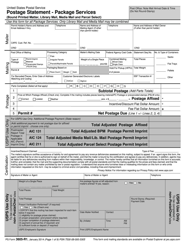 Who Needs the USPS Postage Statement Form 3605-R1?