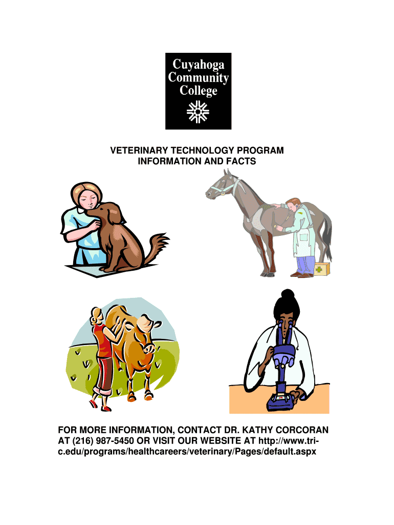 VETERINARY TECHNOLOGY PROGRAM INFORMATION AND FACTOR MORE INFORMATION, CONTACT DR. KATHY CORCORAN AT (216 9875450 OR VISIT OUR WEBSITE AT HTTP://www.tric.edu programs health careers veterinary Pages