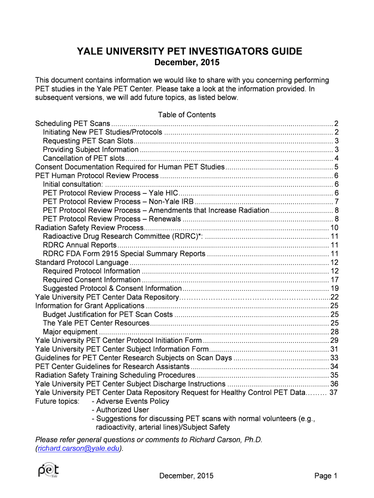 Get the free BYALEb UNIVERSITY PET INVESTIGATORS GUIDE December 2015 - petcenter yale