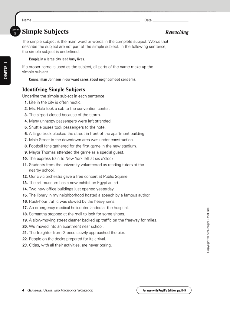 Get the free Name Date Simple Subjects Reteaching - ClassZone