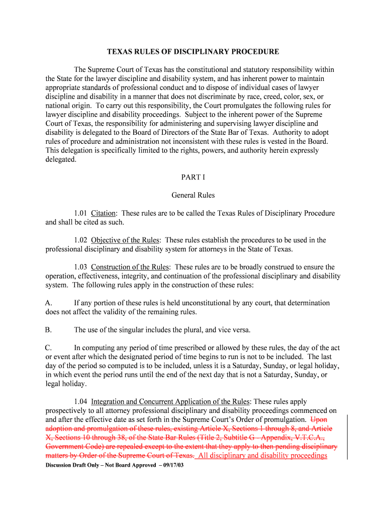 Get the free Texas Rules of Disciplinary Procedure