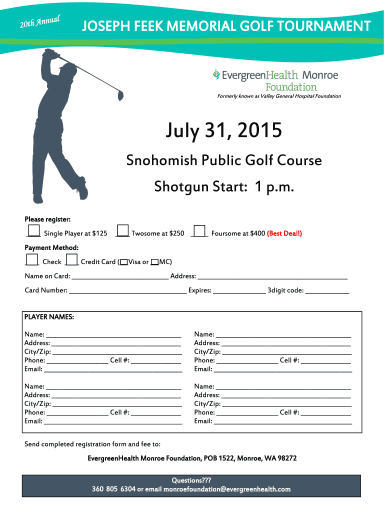 UAL 20th Ann JOSEPH FEET MEMORIAL GOLF TOURNAMENT Formerly known as Valley General Hospital Foundation July 31, 2015, Snohomish Public Golf Course Shotgun Start: 1 p.m. Please register: Single Player